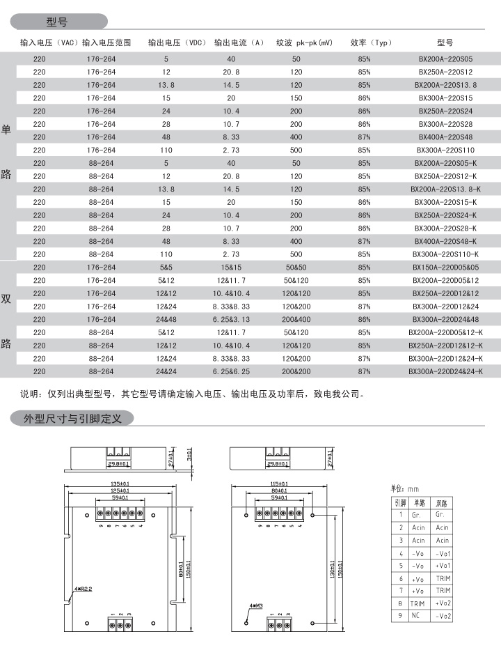 功率:150-350W 輸入電壓:220VAC(176-264V 88-264V) 輸出路數(shù):單路 雙路(獨立) 外形尺寸:150*115*27mm 安裝方式:端子式