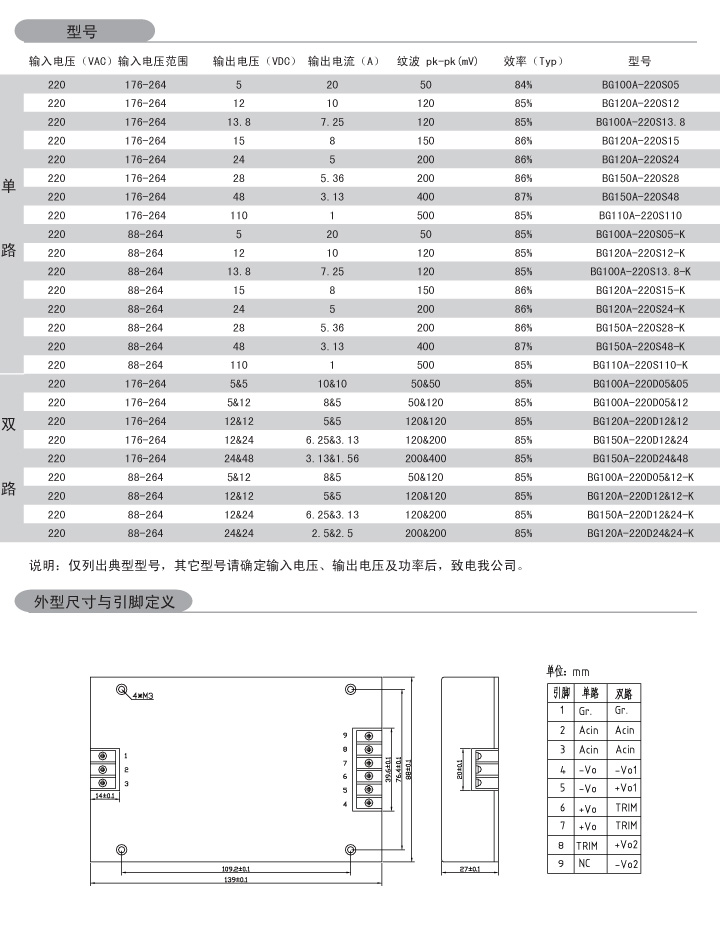 功率:50-150W 輸入電壓:220VAC(176-264V 88-264V) 輸出路數(shù):單路 雙路(獨立) 三路 外形尺寸:139*88*27mm 安裝方式:端子式