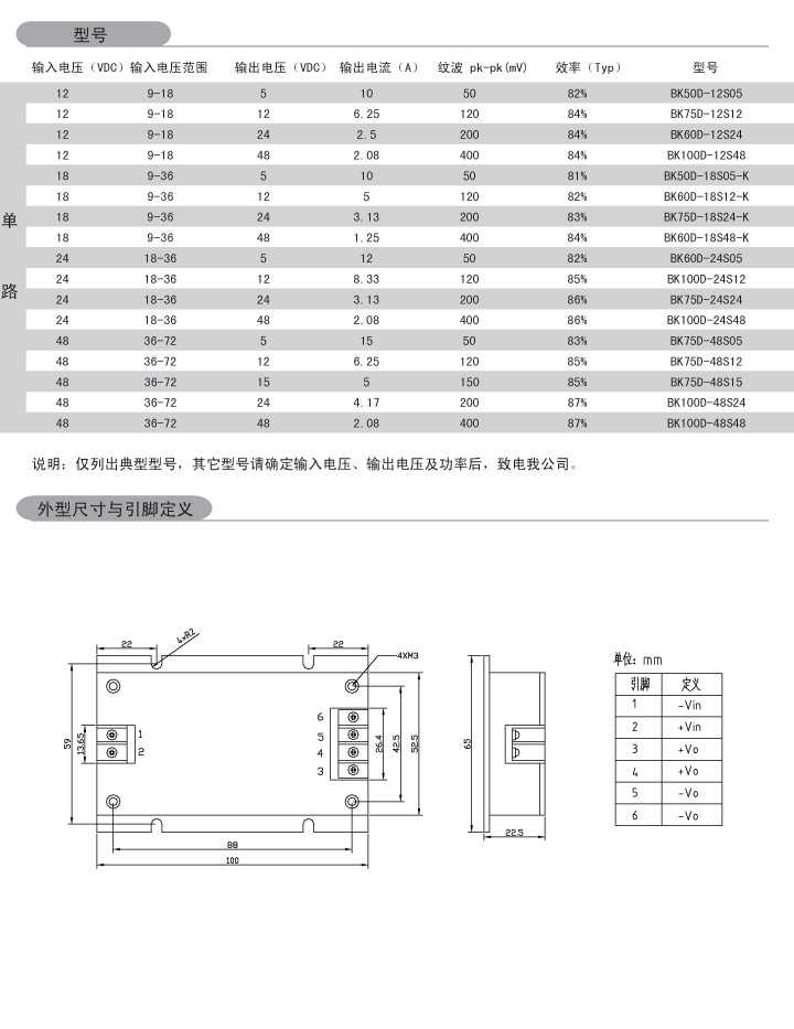 功率:30-100W 輸入電壓:9-18VDC 18-36VDC 36-72VDC 輸出路數(shù):?jiǎn)温?br /> 外形尺寸:98*52*20.5mm 100*65*22.5mm 安裝方式:端子式