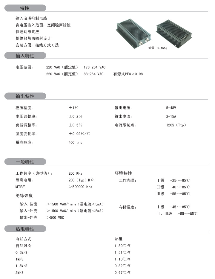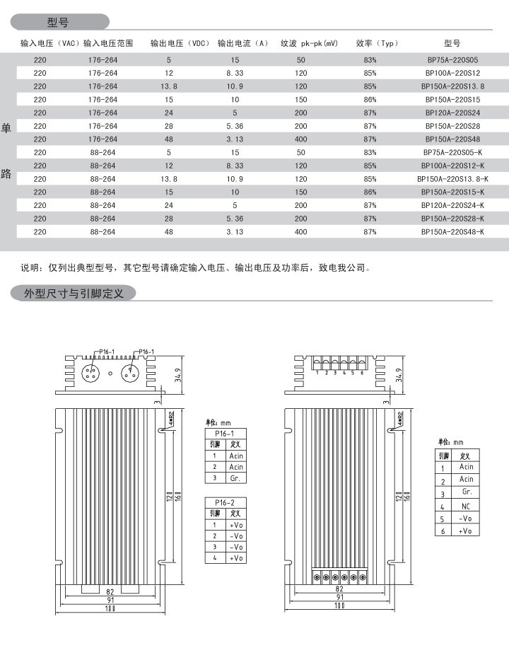 功率:75-150W 輸入電壓:220VAC(176-264V 88-264V) 輸出路數(shù):單路 雙路(定制) 外形尺寸:160*100*35mm 安裝方式:一體式