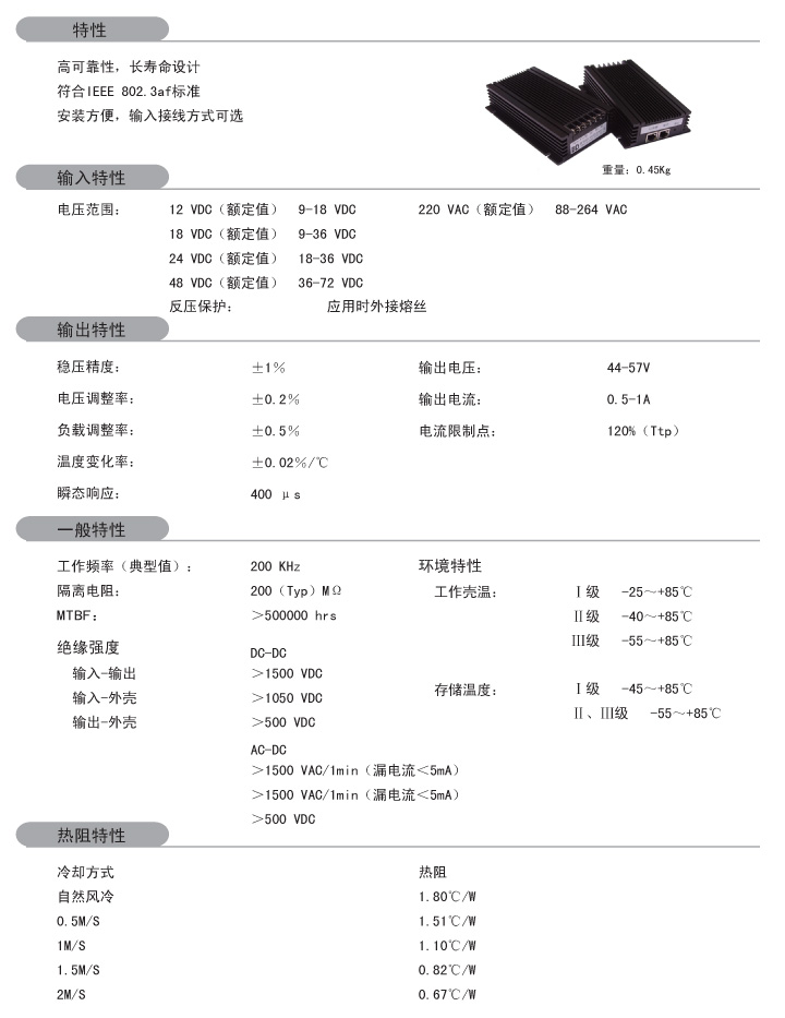 功率:55W 輸入電壓:9-18VDC 18-36VDC 36-72VDC 88-264VAC 網(wǎng)口類型:100M 1000M 外形尺寸:160*100*35mm 安裝方式:一體式